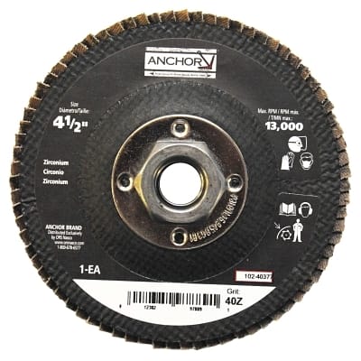 Abrasive High Density Flap Disc, 4-1/2 in dia, 40 Grit, 5/8-11 arbor, 12000 RPM, Type 27
