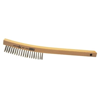 Hand Scratch Brush, 6 in, 4 x 18 Rows, Stainless Steel Bristles, Curved Handle