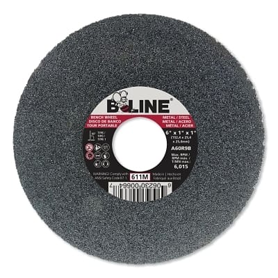 Straight Resinoid Wheel, 6 in dia, 1 in thick, 1 in arbor, 60 grit