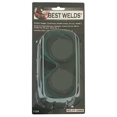Features: Soft vinyl frame comfortably molds to the face and fits easily over prescription glasses | Hooded vents to prevent fogging | Features a 50 mm front lens for dual usage and added safety | Complete with shade 5 lens