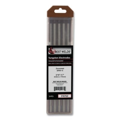 Zirconiated Ground Tungsten Electrode, 3/16 in dia x 7 in L, 5 PK
