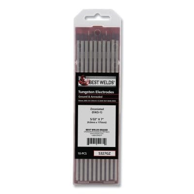 Zirconiated Ground Tungsten Electrode, 5/32 in dia x 7 in L, 10 PK